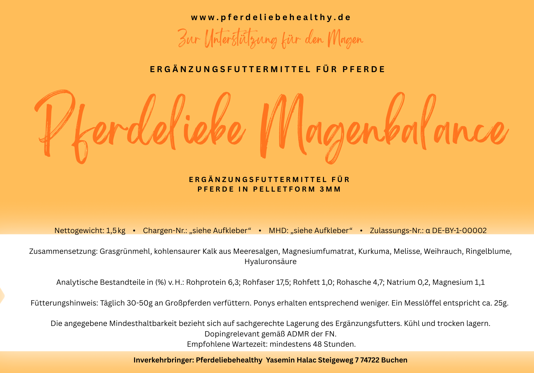 Natürliches Ergänzungsfuttermittel für Pferde zur Unterstützung eines ausgeglichenen Magenmilieus